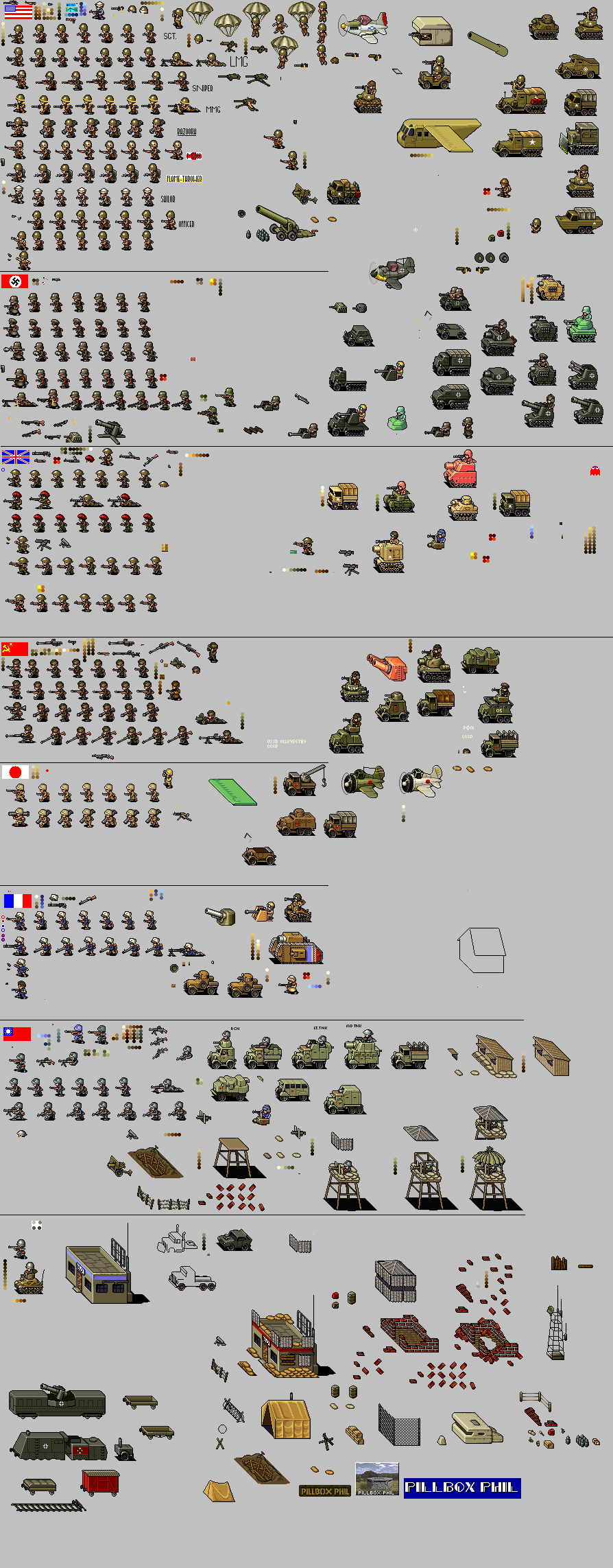 Спрайты солдатов, военной техники и зданий - США, Германии, Британии, СССР и других стран.
